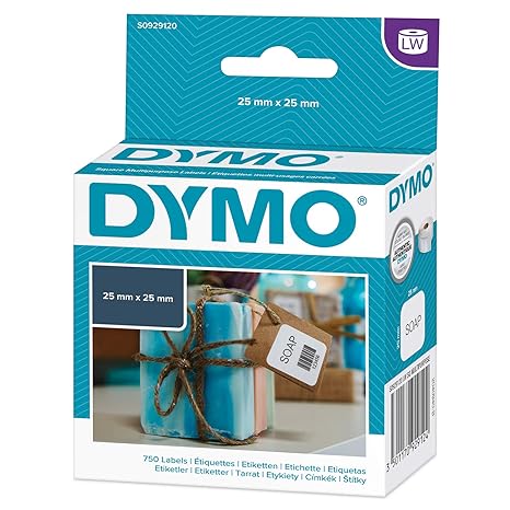 Dymo 25 mm x 25 mm LW Small Multi-Purpose Labels, Roll of 750 Easy-Peel Labels, Self-Adhesive ...